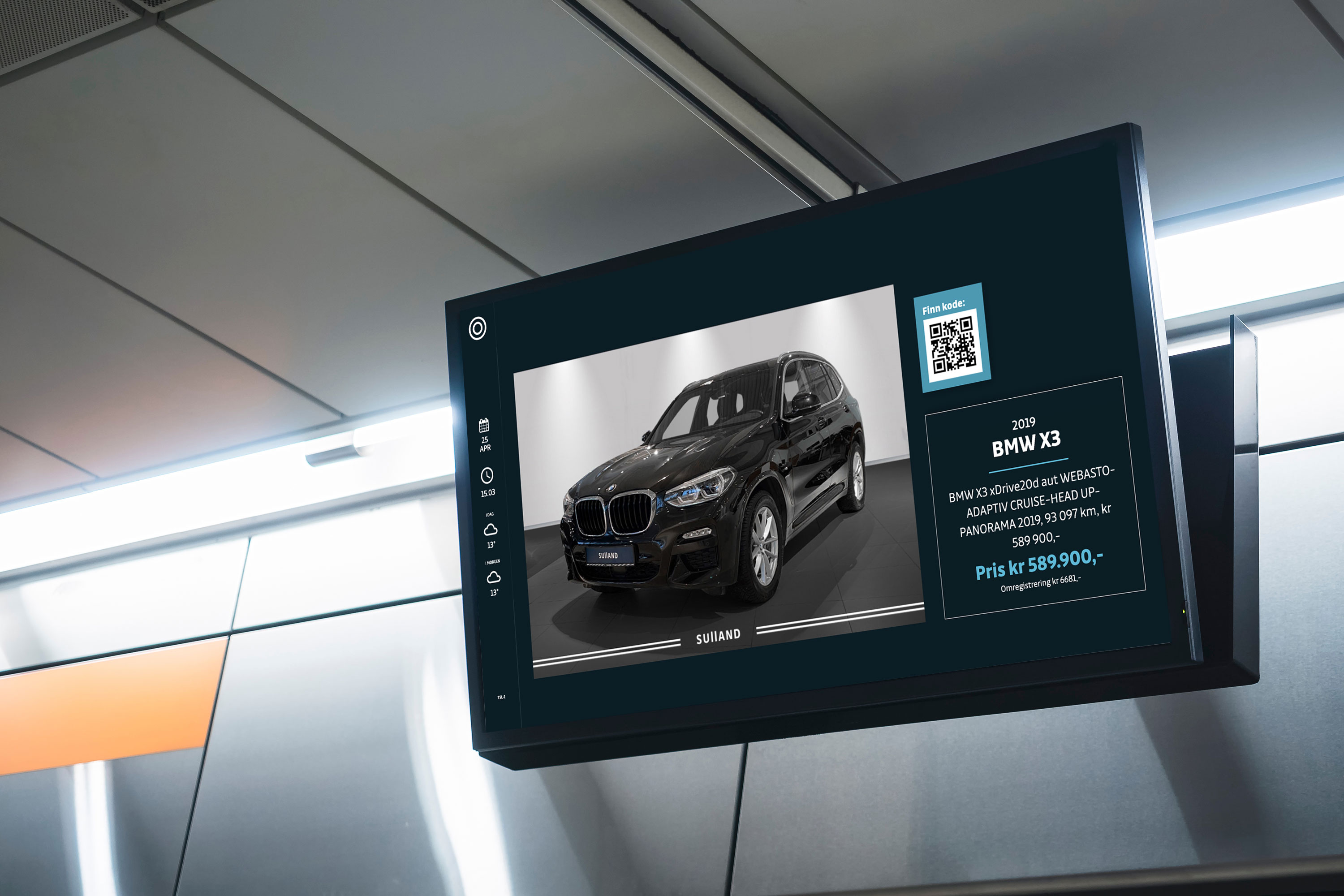 Gjennom vår standard integrasjon mot Microsoft SharePoint hentet vi ut informasjon fra alle ønskelige områder med nyhetsmelinger og nyhetskoblinger automatisk distribuert til riktig skjerm. Løsningen krever ingen oppgaver for Sulland Gruppen, men kun at de vedlikeholder de forskjellige SharePoint områdene. Med tidsstyring av kilder, visningsdager og frekvens kan vi enkelt vekte innholdet riktig, samt sørge for at kun nyheter av en viss alder vises (f.eks.: maks tre dager siden nyheten ble publisert). Så enten avdelingen forhandler BMW, Toyota eller Ford, vises kun relevant informasjon.